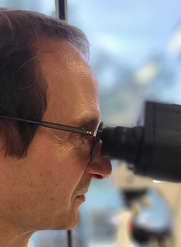 En 2017, à l’initiative de la Pr Martine Vallon, cheffe du service de parasitologie et mycologie médicale, le mycologue poursuit ses recherches aux HCL. Fort des avancées que permet le séquençage à haut débit dans le domaine diagnostique et thérapeutique, il développe avec le Dr Alexis Trecourt, anatomo-pathologiste et doctorant, de nouvelles méthodes de détection des pathogènes dont, par exemple, les diagnostics sur les tissus fixés dans les blocs de paraffine utilisés en anatomocytopathologie. « En mettant en place cette nouvelle technologie, l’identification fongique est effective dans plus de 80 % des cas contre 46 % par séquençage classique auparavant », précise l’actuel responsable scientifique de la plateforme Genepii (pour génomique à visée diagnostique et épidémiologique des maladies infectieuses) aux côtés de la Pr Sophie Jarraud et de la Dr Laurence Josset.