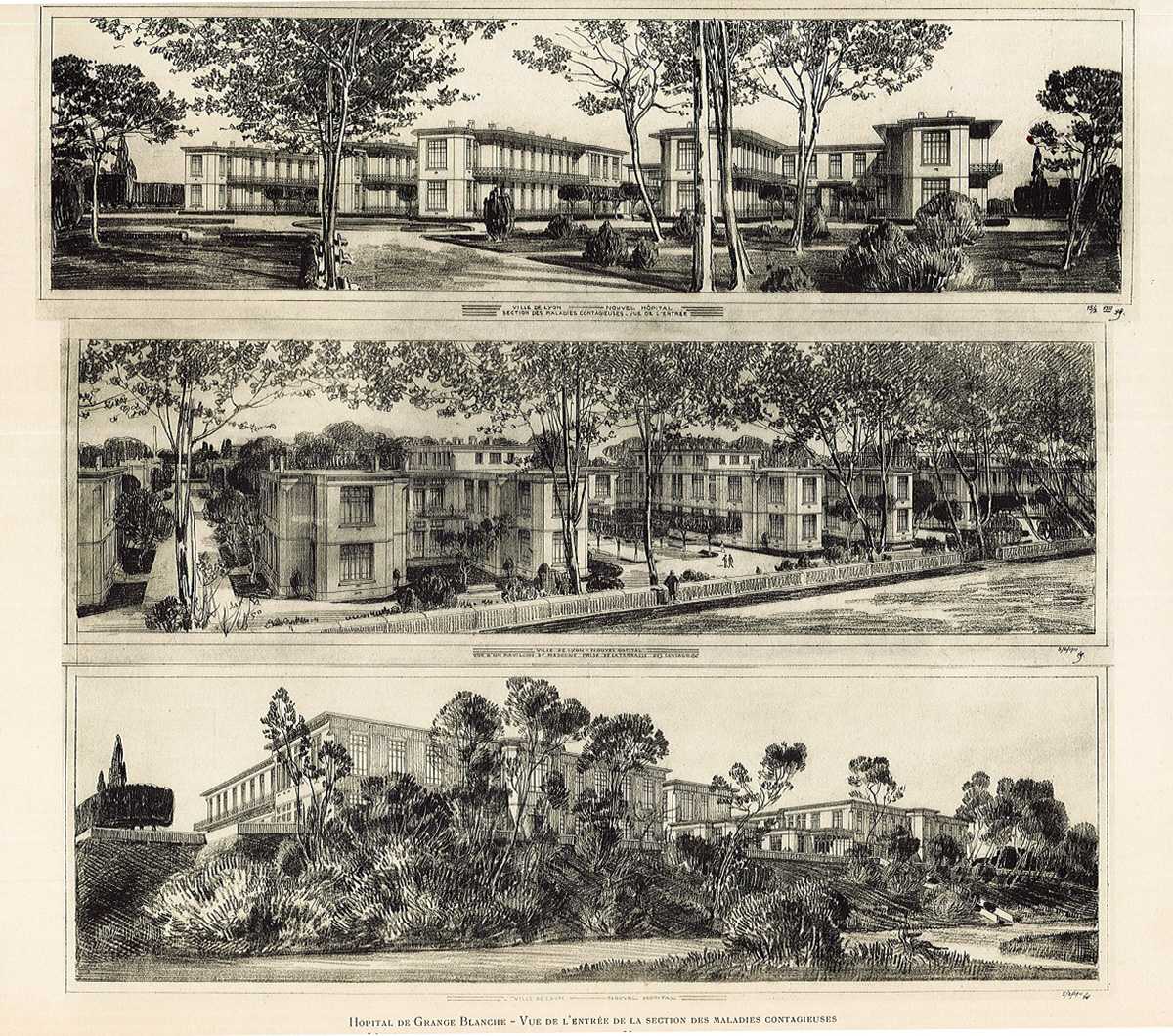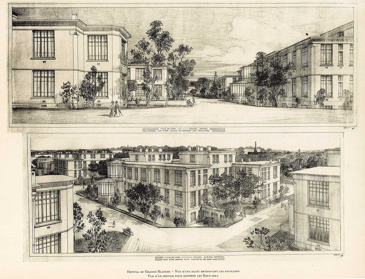 Pour bâtir ce nouvel hôpital, l’architecte Tony Garnier reprend son projet de cité industrielle qu’il décline pour dresser les plans d’un hôpital qui rompt avec le passé et répond aux exigences de la médecine du XXe siècle. Il imagine des pavillons isolés, baignés de lumière, aérés et verdoyants. Les travaux débutent en 1913. Ils dureront vingt ans.