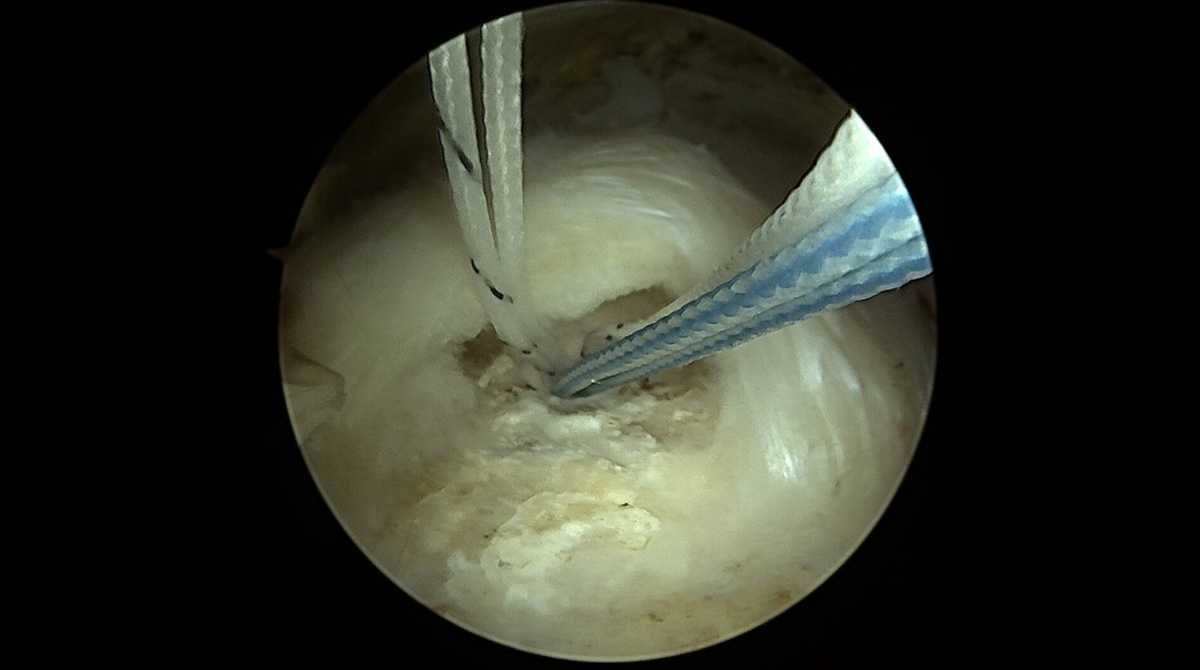 Cette intervention est actuellement réalisée sous arthroscopie, c’est-à-dire en rentrant une caméra et des instruments dans l’articulation de l’épaule par de petites incision centimétriques.