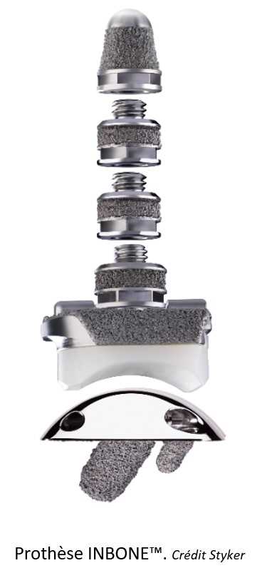 Une prothèse INBONE/InvisionTM avec des guides de coupe sur mesure